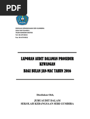 Laporan Audit Sekolah 2005 sejumlah 8212 sijil audit dikeluarkan dan daripada jumlah itu sebanyak 891115 sekolah telah menerima sijil berteguran. Nawwar Huda binti Mohd Noh Dr. Disediakan oleh juruaudit dalam sekolah kebangsaan seri gumbira laporan audit dalaman prosedur kewangan 2016.